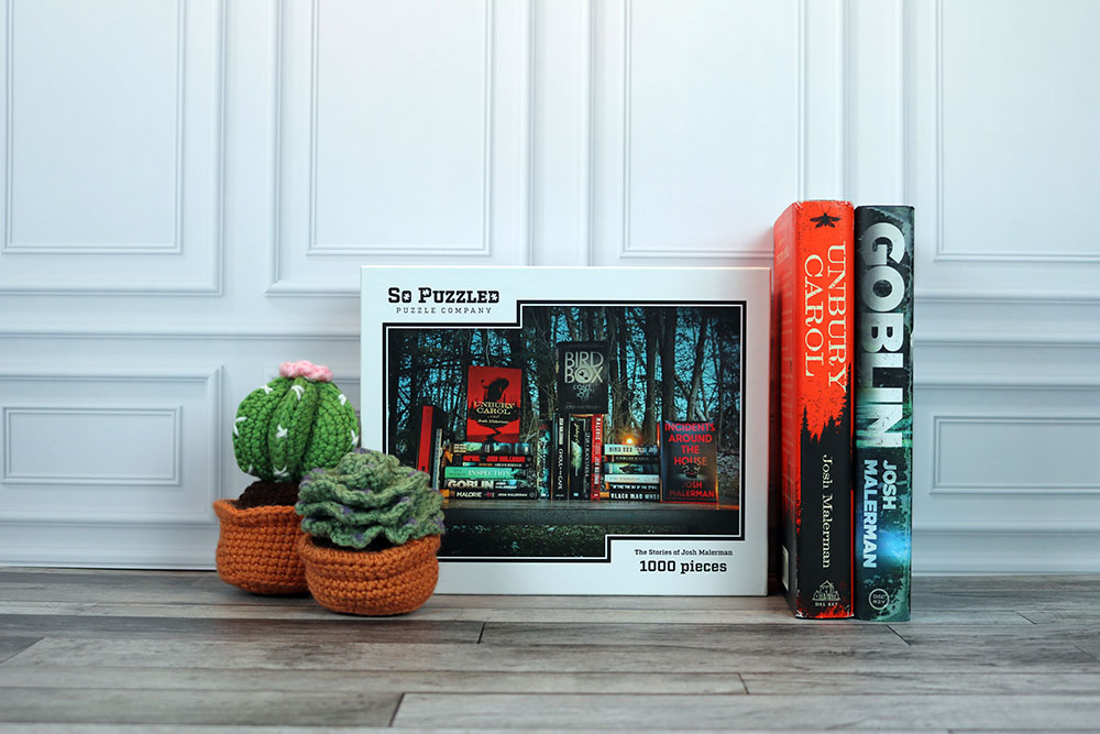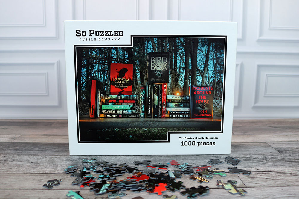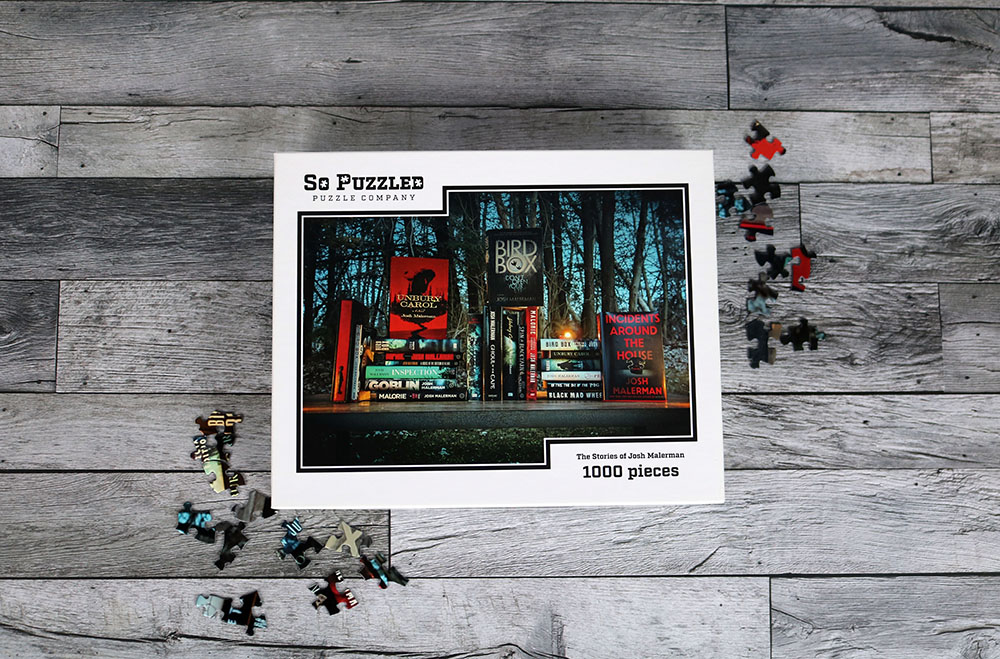 Our “The Stories of Josh Malerman” jigsaw puzzle is a spooky celebration of the works of Michigan-based horror author Josh Malerman. Lit by candles and set against a backdrop of winter trees, this design will bring a chill to your bones appropriate for Josh’s works.